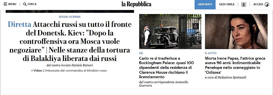 Πρώτη είδηση στην διαδικτυακή έκδοση της ιταλικής εφημερίδας La Repubblica ο θάνατος της Ειρήνης Παπά. «Πέθανε η ειρήνη Παπά, το ιταλικό τηλεοπτικό κοινό θα την θυμάται, πάντα, ως Πηνελόπη, στην τηλεοπτική σειρά Οδύσσεια, του 1968, συμπαραγωγή της Rai», γράφει η εφημερίδα της Ρώμης.