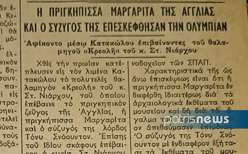 Ο τότε δήμαρχος Αρχαίας Ολυμπίας, Αθανάσιος Κόσμπουλος, είχε ετοιμάσει θερμή υποδοχή στην πριγκίπισσα Μαργαρίτα και τον σύζυγό της, ενώ της πρόσφερε το βιβλίο του «Ο Θεός της Ολυμπίας».