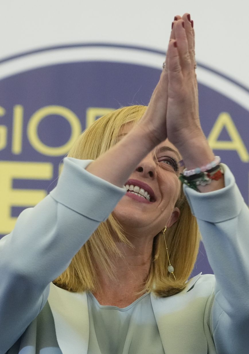 «Οι Ιταλοί έστειλαν καθαρό μήνυμα υπέρ μιας κυβέρνησης της δεξιάς υπό την ηγεσία των Αδελφιών της Ιταλίας», είπε η κυρία Μελόνι επιβεβαιώνοντας τη φιλοδοξία της να γίνει η επόμενη πρωθυπουργός.