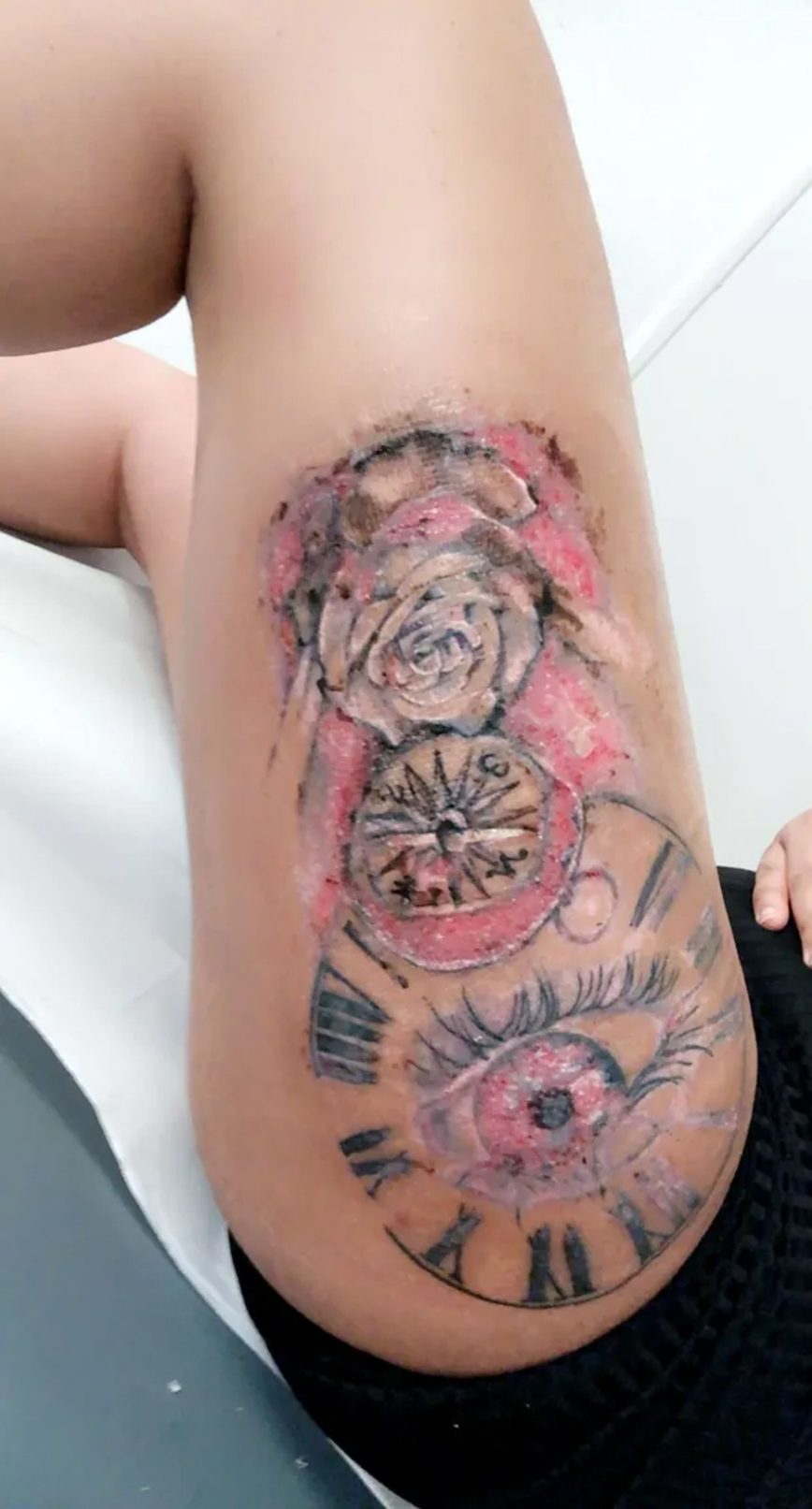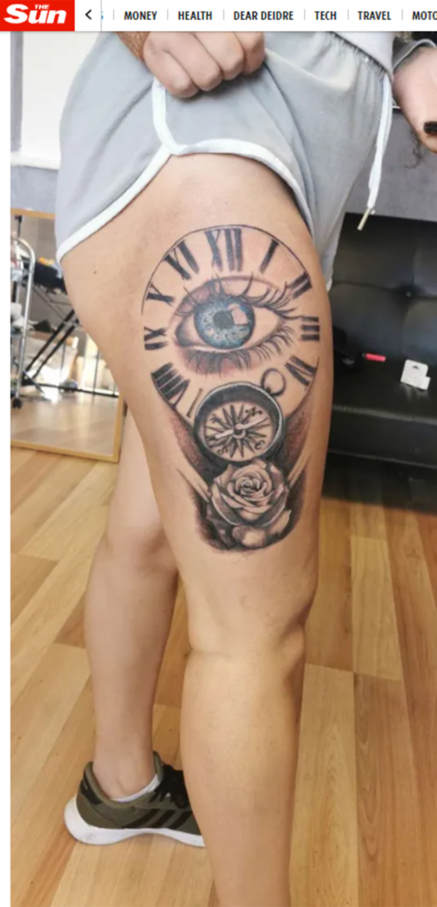 Σύμφωνα με την thesun.co.uk, η 26χρονη Shyann Johanneson πήγε σε έναν τατουατζή που γνώριζε, ο οποίος είχε ξανακάνει σχέδια πάνω στο σώμα της και ζήτησε να χτυπήσει ένα τατουάζ στο πόδι, με το σχέδιο να δείχνει ένα μάτι, ένα ρολόι, μια πυξίδα και ένα τριαντάφυλλο.