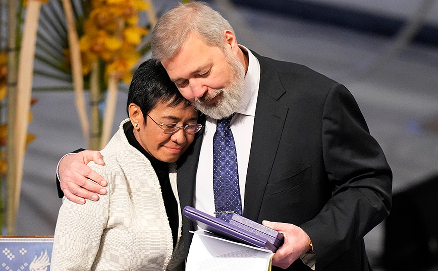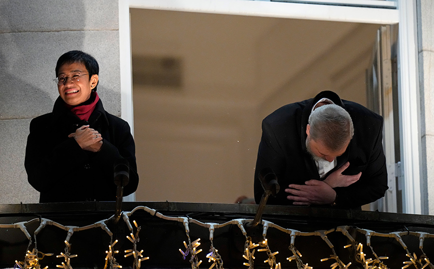 Η Μαρία Ρέσα και ο Ρώσος δημοσιογράφος Ντμίτρι Μουράτοφ τιμήθηκαν τον περσινό Οκτώβριο με το Νόμπελ Ειρήνης για το έργο τους υπέρ «της ελευθερίας της έκφρασης».