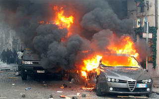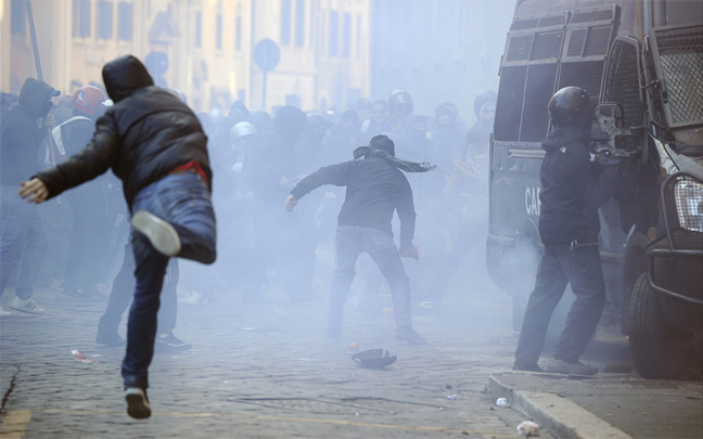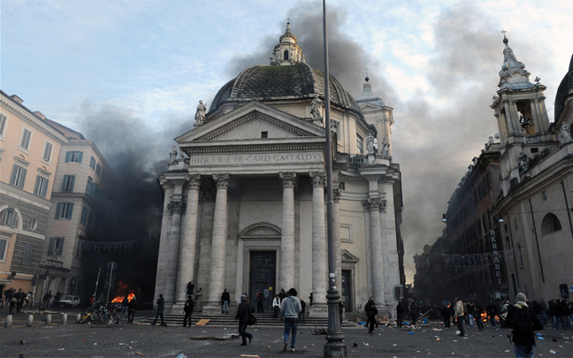 Μετά την ολοκλήρωση της διαδικασίας ψήφου εμπιστοσύνης στην κυβέρνηση Μπερλουσκόνι, από το ιταλικό κοινοβούλιο συνεχίσθηκαν στους δρόμους στης ιταλικής πρωτεύουσας οι συμπλοκές μεταξύ ανδρών της αστυνομίας και φοιτητών.