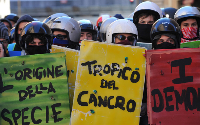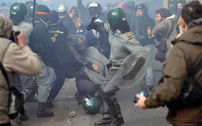 Από το πρωί φοιτητές διαδήλωναν κατά της εκπαιδευτικής μεταρρύθμισης, προσπαθώντας να πλησιάσουν το μέγαρο Παλάτσο Μαντάμα της γερουσίας και την ιδιωτική κατοικία, Παλάτσι Γκρατσιόλι, του Ιταλού πρωθυπουργού.