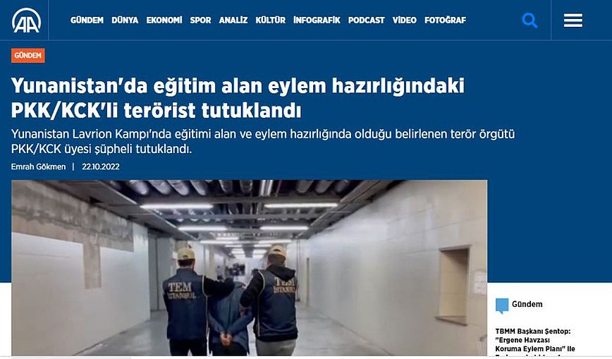 Συνελήφθη ύποπτο μέλος της τρομοκρατικής οργάνωσης PKK/KCK, το οποίο εκπαιδεύτηκε στο στρατόπεδο Λαυρίου στην Ελλάδα και διαπιστώθηκε ότι προετοίμαζε δράση, αναφέρει το τουρκικό πρακτορείο ειδήσεων Anadolu.