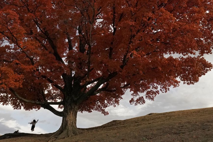 Με τον Οκτώβριο να φτάνει στο τέλος του, το φθινόπωρο έχει κάνει για τα καλά την εμφάνισή του. Τα πάντα γύρω μας έχουν βαφτεί στα χρώματα της μελαγχολικής εποχής του χρόνου. Στο Κάνσας σίτι του Μιζούρι, μια γυναίκα ποζάρει ξέγνοιαστη, χαρούμενη και χοροπηδώντας μπροστά σε ένα δέντρο σφενδάμου το οποίο είναι «βαμμένο» στο χρώμα του φθινοπώρου.