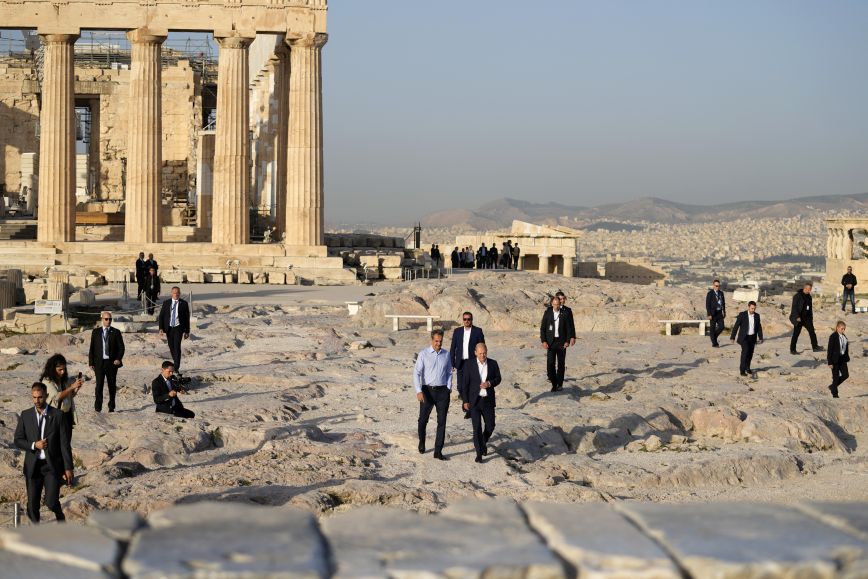 Στην Ακρόπολη ξεναγήθηκε ο Όλαφ Σολτς και ο ίδιος μαγεύτηκε από την επιβλητικότητα των μνημείων που αντίκρισε. Ο Κυριάκος Μητσοτάκης και ο Όλαφ Σολτς περπάτησαν στον αρχαίο ναό του Παρθενώνα στο λόφο της Ακρόπολης την Πέμπτη 27 Οκτωβρίου 2022 στο πλαίσιο της διήμερης επίσημης επίσκεψης του γερμανού καγκελάριου στην Ελλάδα.