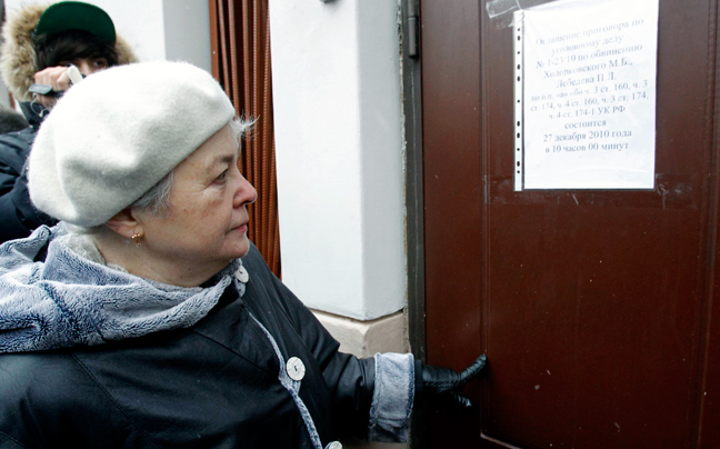 Με αγωνία έφτασε στο δικαστήριο η Μαρίνα Χοντορκόφσκαγια, περιμένοντας να αρχίσει σήμερα η ανακοίνωση της απόφασης για το γιο της, τον δισεκατομμυριούχο της εταιρείας Yukos Μιχαήλ Χοντορκόφσκι.