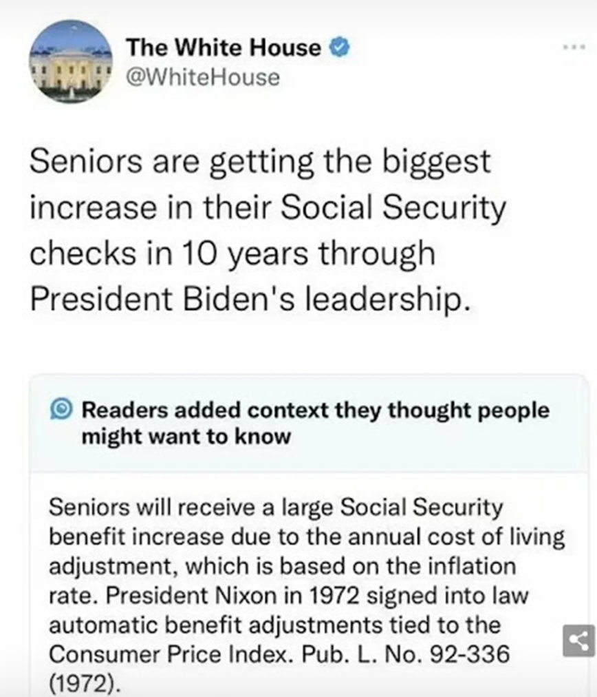 Σε μια τεράστια γκάφα υπέπεσε ο Λευκός Οίκος, αφού έκανε tweet που επαινούσε προσωπικά τον Τζο Μπάιντεν για αυξήσεις στις συντάξεις, κάτι που πήρε πίσω γρήγορα κατεβάζοντας την ανάρτηση, αφού τα παραπάνω χρήματα δόθηκαν από νόμο που είχε περάσει ο Νίξον.