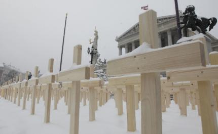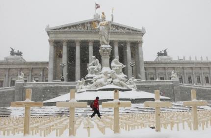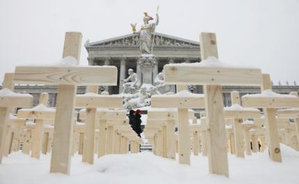 Μια διαφορετική «εξόχως σιωπηλή» διαμαρτυρία στήθηκε έξω από το Αυστριακό Κοινοβούλιο σε ένδειξη διαμαρτυρίας για τα αυστηρά μέτρα που προβλέπονται στο νέο προϋπολογισμό της χώρας για το 2011, ο οποίος συζητάται αυτές τις ημέρες.