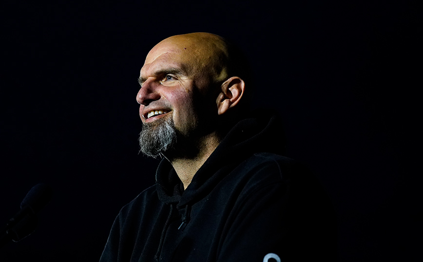 Απέναντί του είναι ο Τζον Φέτερμαν, ένας καραφλός γίγαντας (με ύψος 2,05) ο οποίος τάσσεται υπέρ της νομιμοποίησης της κάνναβης και της ενίσχυσης των εργατικών συνδικάτων. Ο 50χρονος ξεχωρίζει επίσης για το απλό, καθημερινό του ντύσιμο, κυρίως τα σορτς και τις αθλητικές φόρμες που φορά, αλλά πάνω απ’ όλα τα φούτερ με κουκούλα τα οποία δεν αποχωρίζεται σχεδόν ποτέ αναφέρει το ΑΠΕ-ΜΠΕ, επικαλούμενο το AFP.