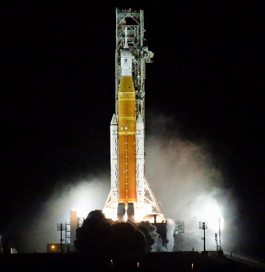 Ο πύραυλος, που φέρει την ονομασία SLS (Space Launch System), εκτοξεύθηκε στη διάρκεια της νύχτας, στη 01:47 (τοπική ώρα, 08:47 ώρα Ελλάδας) από το διαστημικό κέντρο Κένεντι.