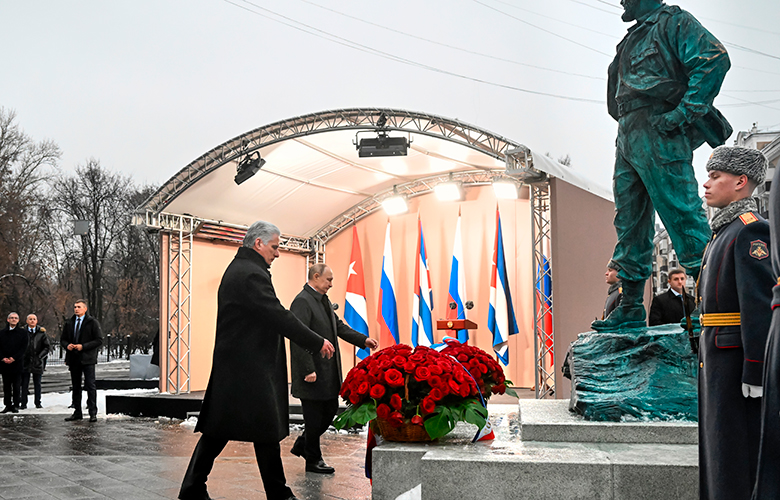 Οι δύο ηγέτες έκαναν επίσης τα αποκαλυπτήρια ενός αγάλματος στη Μόσχα του Φιντέλ Κάστρο, ο οποίος κυβέρνησε την Κούβα για σχεδόν 50 χρόνια και πέθανε το 2016.