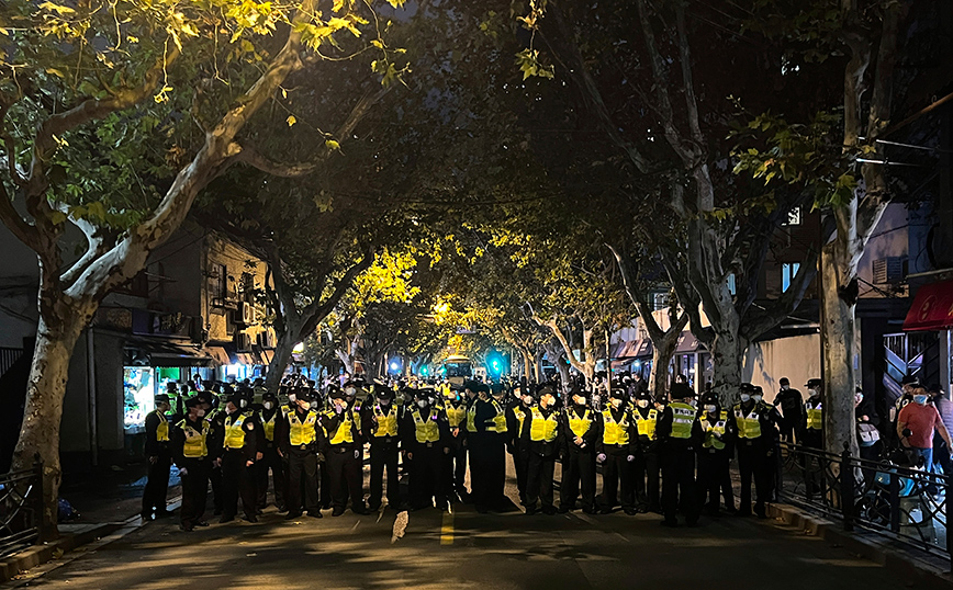 Σήμερα το πρωί αστυνομικοί ήταν ανεπτυγμένοι στο Πεκίνο και τη Σανγκάη κοντά στα σημεία όπου χθες είχαν πραγματοποιηθεί συγκεντρώσεις.