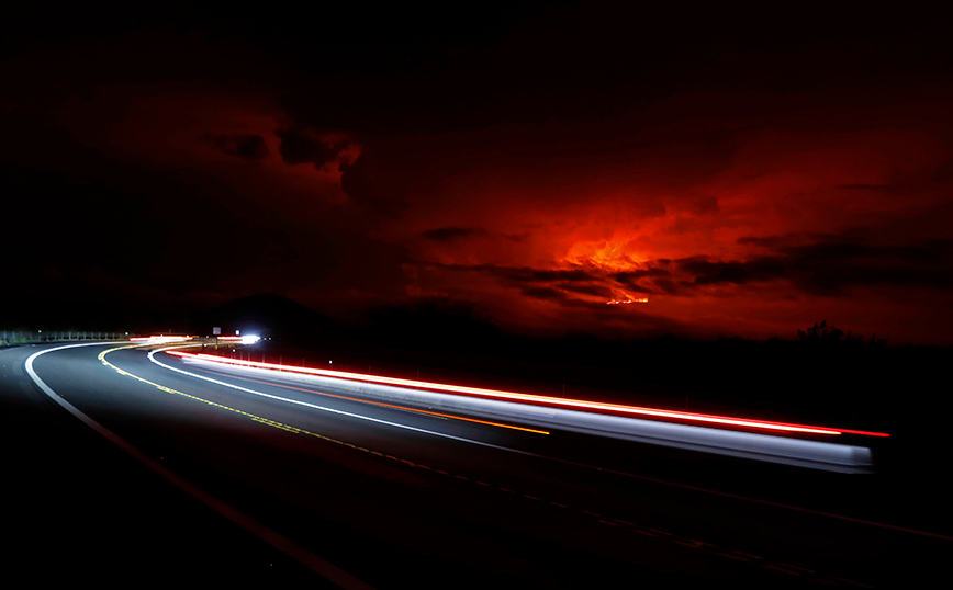 Το μεγαλύτερο ενεργό ηφαίστειο στο κόσμο βρίσκεται στη Μάουνα Λόα στη Χαβάη και εξερράγη, προσφέροντας εκπληκτικές εικόνες, από τη λάβα και την τέφρα που εκτοξεύτηκε. Στην συγκεκριμένη φωτογραφία που τραβήχτηκε τη Δευτέρα (28/11) φαίνονται τα αυτοκίνητα που βρίσκονται στο Saddle Road να απομακρύνονται καθώς το Mauna Loa εκρήγνυται πίσω τους. Αξίζει να σημειωθεί πως το Mauna Loa, εξερράγη τη Δευτέρα (28/11) για πρώτη φορά μετά από 38 χρόνια. Η τελευταία έκρηξη σημειώθηκε το 1984.