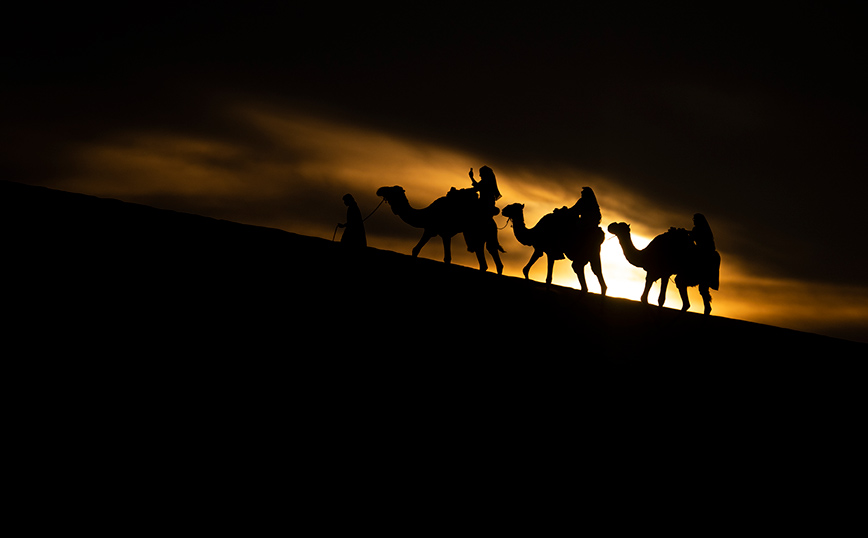 Με το Κατάρ να συνεχίζει να καλωσορίζει εκατομμύρια φιλάθλους για το Παγκόσμιο Κύπελλο Ποδοσφαίρου ακόμη και οι καμήλες εργάζονται… υπερωρίες. Οι επισκέπτες, που καταφτάνουν σε αριθμούς που δεν έχει ξαναδεί το μικροσκοπικό εμιράτο, σπεύδουν να ολοκληρώσουν μια λίστα με τουριστικές εμπειρίες στον Κόλπο μεταξύ των αγώνων του Μουντιάλ 2022 όπως η βόλτα στην πλάτη μιας καμήλας. Οι καμήλες αναγκάστηκαν να σηκωθούν από τους χειριστές τους για να ζήσουν και αυτές στους ρυθμούς του Μουντιάλ. Στη συγκεκριμένη φωτογραφία φαίνονται τουρίστες οδηγούν καμήλες κοντά στην παραλία Sealine στο Mesaieed, Κατάρ.