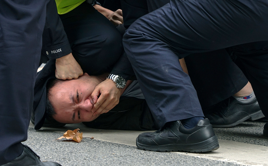 Εκατοντάδες διαδηλωτές στη Σαγκάη συγκρούστηκαν με την αστυνομία το απόγευμα της Κυριακής (27/11) για τους αυστηρούς περιορισμούς της Κίνας για την πολιτική zero COVID-19. Ολόκληρες συνοικίες των μεγαλύτερων πόλεων και του Πεκίνου, μπαίνουν για ακόμα μία φορά σε καραντίνα, καθώς την προηγούμενη εβδομάδα, καθημερινά σημειώνονταν ρεκόρ νέων κρουσμάτων κορονοϊού. Η αυστηρότητα των μέτρων προκάλεσε μεγάλες διαδηλώσεις, κυρίως φοιτητών οι οποίες μάλιστα πήραν και πολιτικό χαρακτήρα. Στη συγκεκριμένη φωτογραφία, αστυνομικοί ασκούν βία και συλλαμβάνουν έναν διαδηλωτή κατά τη διάρκεια διαμαρτυρίας σε έναν δρόμο στη Σαγκάη της Κίνας.