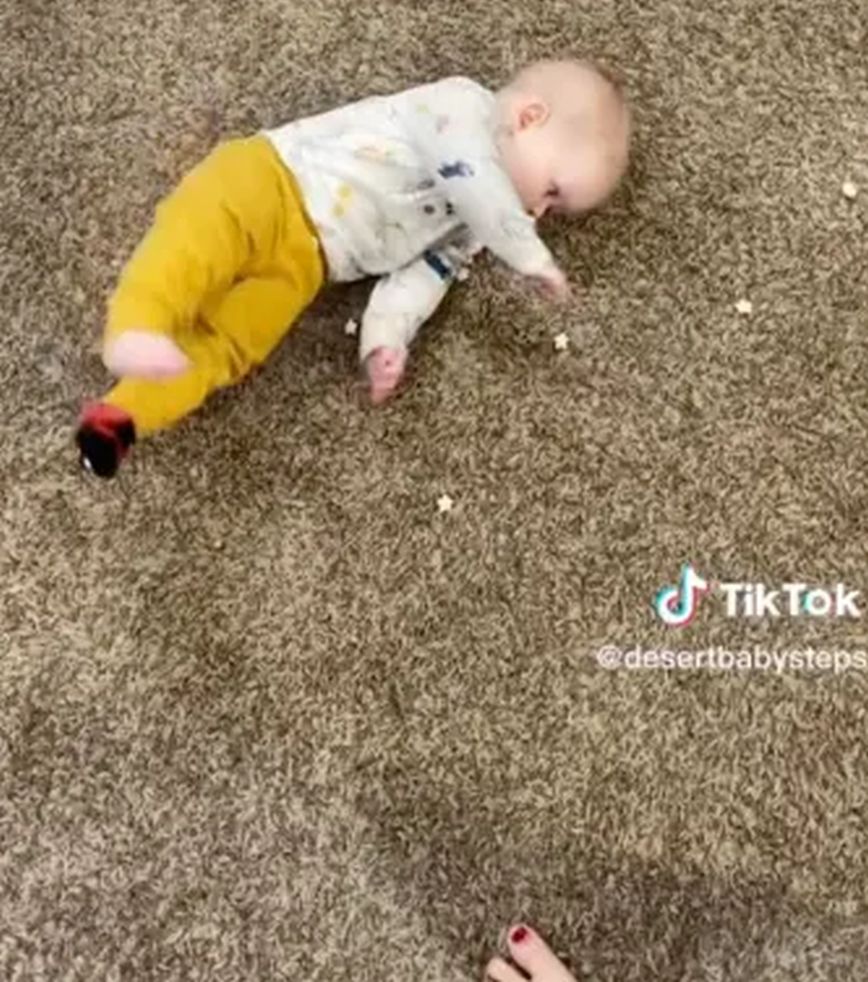 Στο viral βίντεο, που έχει συγκεντρώσει πάνω από 4,6 εκατομμύρια views, το μωρό της φαίνεται να είναι κάτω στο πάτωμα την ώρα που εκείνη του πετάει δημητριακά στο χαλί.