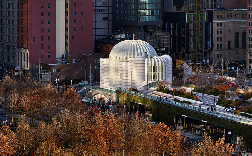 «Είμαστε ενθουσιασμένοι που ανακοινώνουμε την ιστορική επαναλειτουργία της νέας Ελληνικής Ορθόδοξης Εκκλησίας του Αγίου Νικολάου και του Εθνικού Ναού, μιας δομής που είναι εμβληματική του ιστορικού μέλλοντος και του καθοριστικού παρελθόντος του Κάτω Μανχάταν», έγραψε στο Twitter ο αρχιτέκτονας.