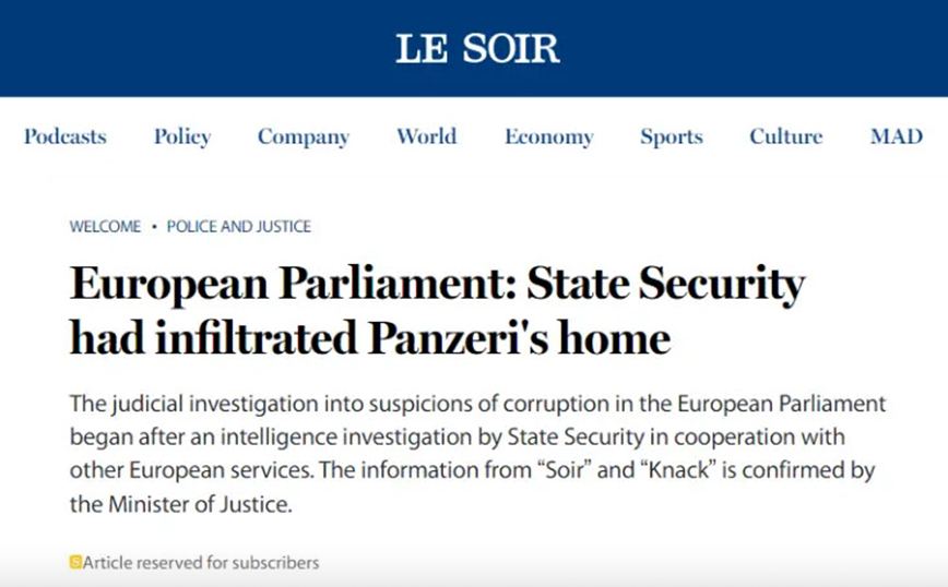 Σύμφωνα με τη βελγική Le Soir η δικαστική έρευνα για πιθανή διαφθορά στο Ευρωπαϊκό Κοινοβούλιο ξεκίνησε μετά από έρευνα πληροφοριών από την Υπηρεσία Εθνικής Ασφαλείας του Βελγίου.