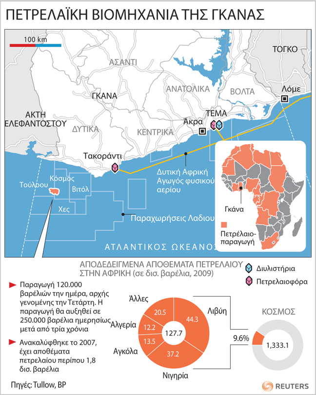 Τον Ιούνιο του 2007 ανακαλύφθηκαν μεγάλα παράκτια κοιτάσματα πετρελαίου, ενθαρρύνοντας τις προσδοκίες για μία τεράστια οικονομική ανάπτυξη. Την ερχόμενη Τετάρτη θα ξεκινήσει η άντληση του πετρελαίου και σε πρώτη φάση η παραγωγή θα ανέρχεται στα 120 χιλ. βαρέλια ημερησίως. Μέσα στην ερχόμενη τριετία, η παραγωγή θα αυξηθεί στα 250 χιλ. βαρέλια.