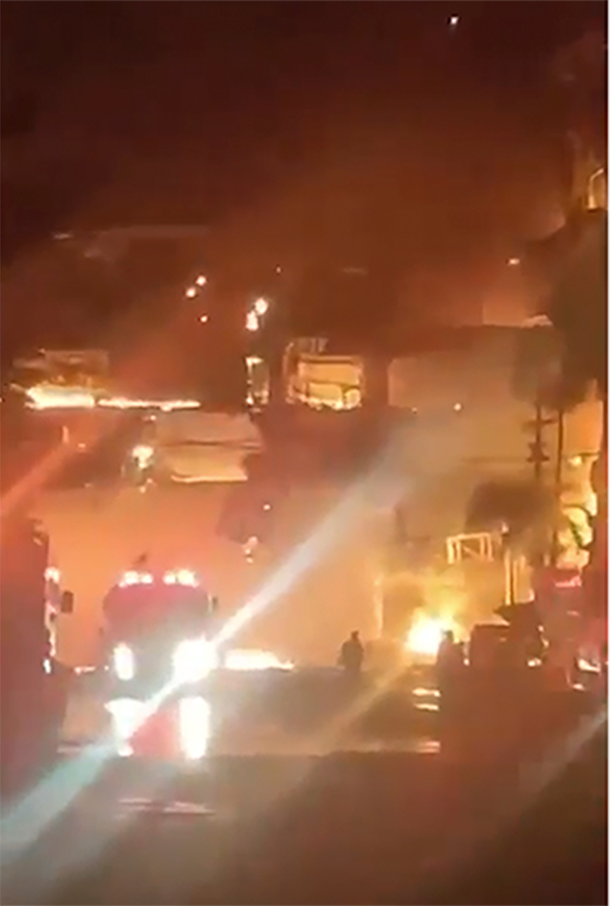 Το οκταώροφο συγκρότημα, συμπεριλαμβανομένης της κλειστής αερογέφυρας που συνδέει τα δύο κτίριά του, έγιναν παρανάλωμα του πυρός.
