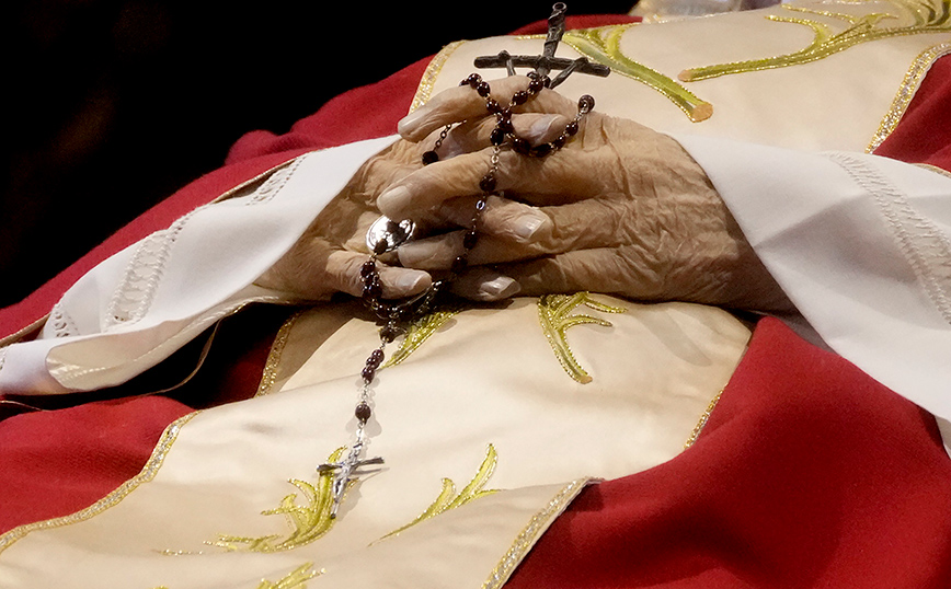 Αύριο το πρωί, η σορός του εκλιπόντος ποντίφικα θα μεταφερθεί στον εξωτερικό χώρο της εκκλησίας για την τέλεση της κηδείας, της οποίας θα χοροστατήσει ο πάπας Φραγκίσκος. Το Βατικανό έκανε γνωστό ότι η τελετή θα είναι παρόμοια με εκείνη που προβλέπεται για κάθε ποντίφικα, με κάποιες μικρές αλλαγές. Μόνον μια φορά στο παρελθόν, το 1802, στην κηδεία ενός καθολικού πάπα συμμετείχε και διάδοχός του.