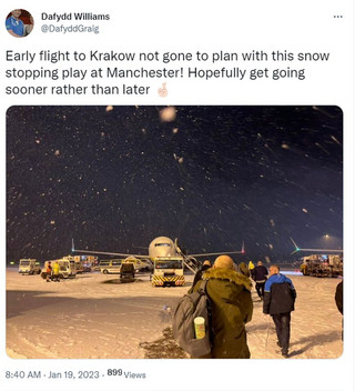 Ο Natahan Booth τουίταρε ότι «καθόταν στο αεροπλάνο που άλλαξε πορεία για Μπέρμινγχαμ εξαιτίας του χιονιού την τελευταία ώρα».