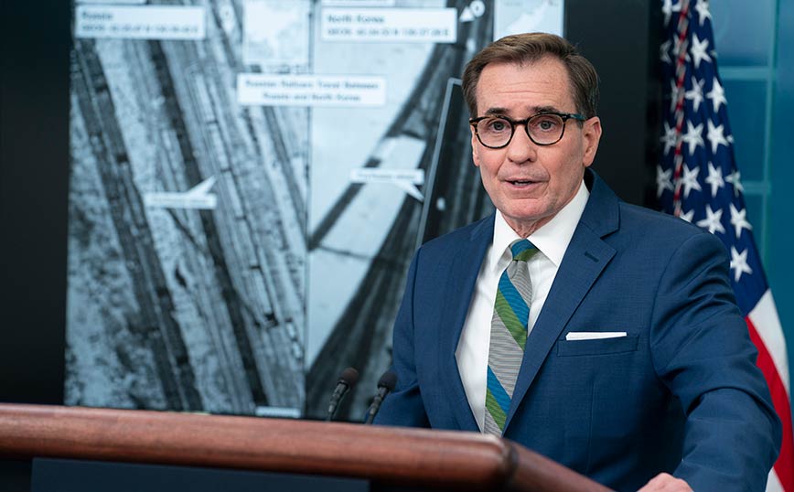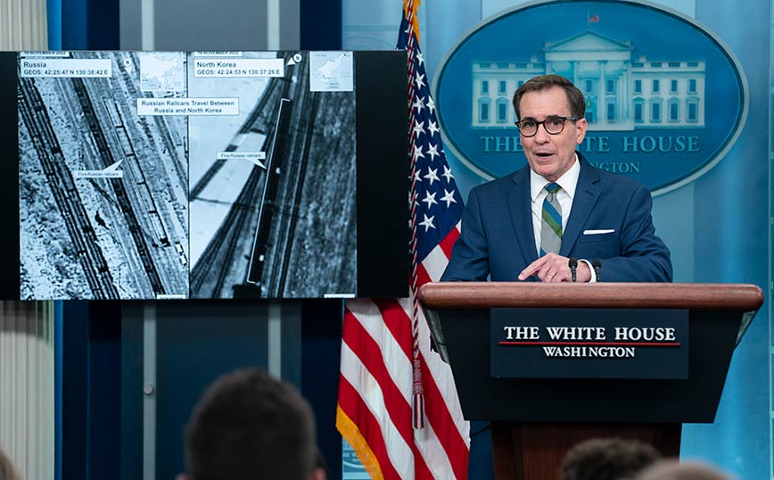 Ο εκπρόσωπος, σύμφωνα με το Αθηναϊκό Πρακτορείο Ειδήσεων, παρουσίασε μια δορυφορική φωτογραφία που τραβήχθηκε στις 18 Νοεμβρίου και δείχνει, όπως λέει ο Λευκός Οίκος, ένα ρωσικό τρένο να πηγαίνει στη Βόρεια Κορέα για να παραλάβει όπλα για τη Βάγκνερ. Στις 19 Νοεμβρίου η Βόρεια Κορέα γέμισε πέντε βαγόνια με εμπορευματοκιβώτια και το τρένο επέστρεψε στη Ρωσία. Σύμφωνα με τον Κίρμπι, η Βόρεια Κορέα παρέδωσε πυραύλους τους οποίους θα χρησιμοποιούσε η Βάγκνερ. «Μολονότι εκτιμούμε πως η ποσότητα του υλικού που παραδόθηκε στη Βάγκνερ δεν άλλαξε τη δυναμική του πεδίου της μάχης στην Ουκρανία, αναμένουμε ότι θα συνεχίσει να λαμβάνει βορειοκορεατικά οπλικά συστήματα», πρόσθεσε.