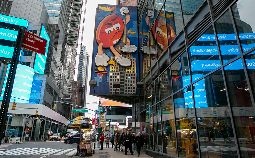 Η πλατεία Τάιμς συγκαταλέγεται στις γνωστότερες τοποθεσίες της Νέας Υόρκης. Πρόκειται για σταυροδρόμι και μικρή πλατεία στην καρδιά του Μανχάταν, με φόντο γιγάντιες ηλεκτρονικές διαφημιστικές πινακίδες, φωτισμένες μέρα νύχτα για τους 50 εκατ. επισκέπτες που περνούν από εκεί κάθε χρόνο.