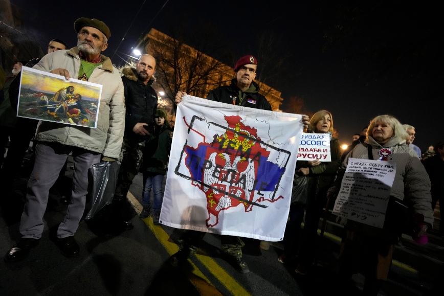 Εκατοντάδες υποστηρικτές ακροδεξιών οργανώσεων διαδήλωσαν απόψε μπροστά από το προεδρικό μέγαρο στο Βελιγράδι φωνάζοντας συνθήματα κατά του προέδρου της Δημοκρατίας Αλεξάνταρ Βούτσιτς, τον οποίο κατηγορούν ότι «ξεπούλησε το Κόσοβο». Οι διαδηλωτές κάποια στιγμή προσπάθησαν να πλησιάσουν την κεντρική είσοδο του κτιρίου, οι αστυνομικοί ωστόσο, που είχαν αναπτυχθεί γύρω από το κτίριο, κατάφεραν να τους απωθήσουν.