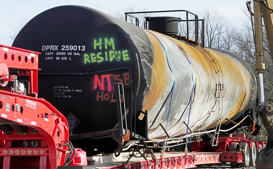 Στις 3 Φεβρουαρίου μετά τον εκτροχιασμό του τρένου προκλήθηκε τεράστια πυρκαγιά, ενώ πολλές χιλιάδες κάτοικοι της περιοχής κλήθηκαν να εγκαταλείψουν τα σπίτια τους. Το τρένο μετέφερε μεταξύ άλλων χλωριούχο βινύλιο, ένα καρκινογόνο χημικό προϊόν που είναι ιδιαίτερα εύφλεκτο και χρησιμοποιείται στην παρασκευή πλαστικού.