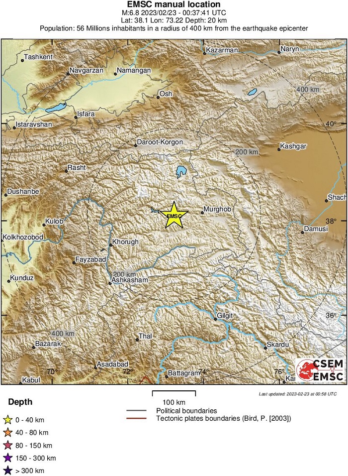 Πολύ ισχυρή σεισμική δόνηση 7,3 βαθμών της κλίμακας Ρίχτερ καταγράφηκε κοντά στα σύνορα της αυτόνομης περιφέρειας Σιντζιάνγκ των Ουιγούρων, κοντά στα σύνορα της βορειοδυτικής Κίνας με το Τατζικιστάν, στις 08:37 (τοπική ώρα – στις 02:37 ώρα Ελλάδας), μεταδίδει το κινεζικό κρατικό τηλεοπτικό δίκτυο CCTV.