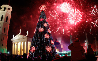 Φωτογραφία από το εντυπωσιακό άναμμα του δέντρου που συνοδεύτηκε από πολύχρωμα βεγγαλικά.