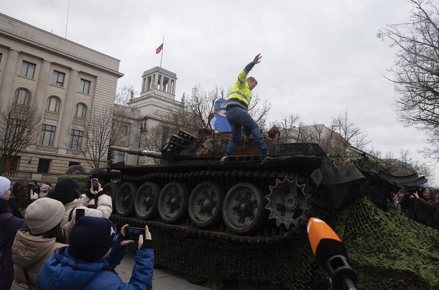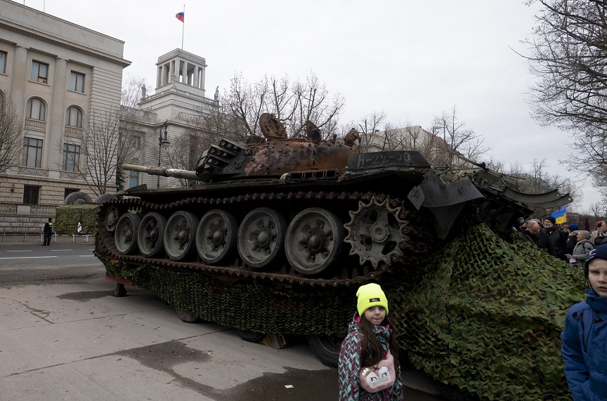 Ακτιβιστές που διαμαρτύρονται για την εισβολή της Ρωσίας στην Ουκρανία στάθμευσαν την Παρασκευή (24/2) – πρώτη επέτειο της ρωσικής εισβολής στην Ουκρανία – ακριβώς μπροστά από την ρωσική πρεσβεία στο Βερολίνο ένα κατεστραμμένο, σκουριασμένο ρωσικό άρμα μάχης, φέρνοντας ένα κομμάτι του πεδίου της μάχης στο κέντρο της γερμανικής πρωτεύουσας.