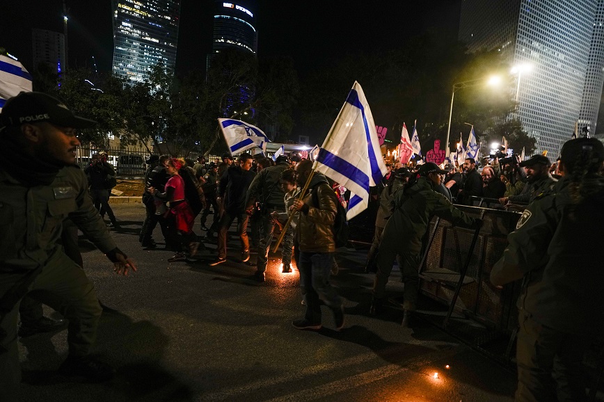 Χιλιάδες πολίτες του Ισραήλ κατέβηκαν στους δρόμους του Τελ Αβίβ το βράδυ του Σαββάτου και για όγδοη συνεχόμενη εβδομάδα διαμαρτυρήθηκαν κατά της αμφιλεγόμενης μεταρρύθμισης του δικαστικού συστήματος που προωθεί ο Μπενιαμίν Νετανιάχου και την οποία θεωρούν επίθεση κατά της δημοκρατίας.