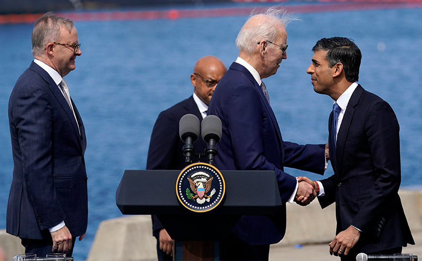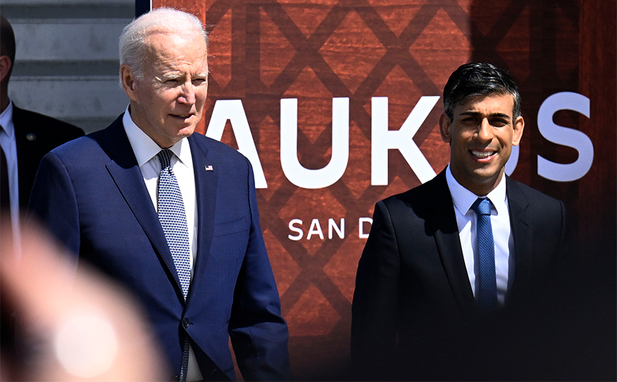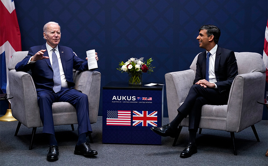 Οι Μπάιντεν και Σούνακ συνομίλησαν σε αμερικανική βάση του Πολεμικού Ναυτικού στο Σαν Ντιέγκο με αφορμή την ανακοίνωση λεπτομερειών του προγράμματος υποβρυχίων της συμμαχίας AUKUS, στην οποία συμμετέχει και η Αυστραλία.