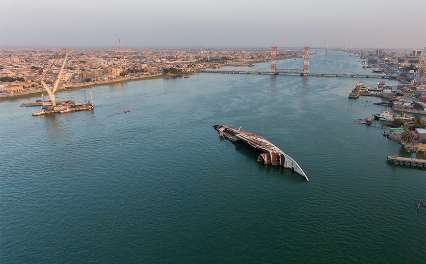 Σήμερα το σκουριασμένο κουφάρι του Al-Mansur είναι αναποδογυρισμένο σε ένα ποτάμι του νότιου Ιράκ και αποτελεί ένα θλιβερό ενθύμιο της σιδηράς πυγμής της εξουσίας του, που έληξε με την υπό τις ΗΠΑ εισβολή πριν από δύο δεκαετίες.