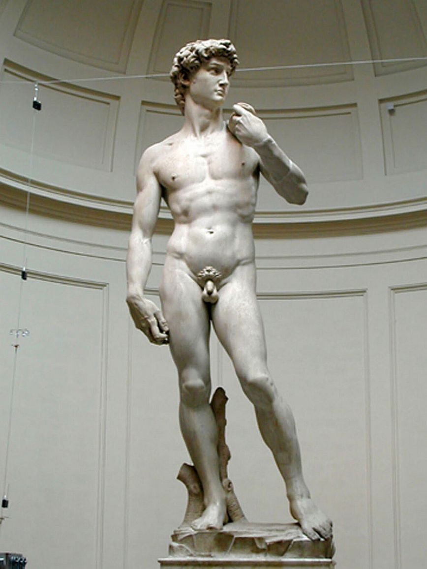 Το άγαλμα απεικονίζει έναν εντελώς γυμνό Δαβίδ, τη βιβλική μορφή που σκοτώνει τον γίγαντα Γολιάθ.