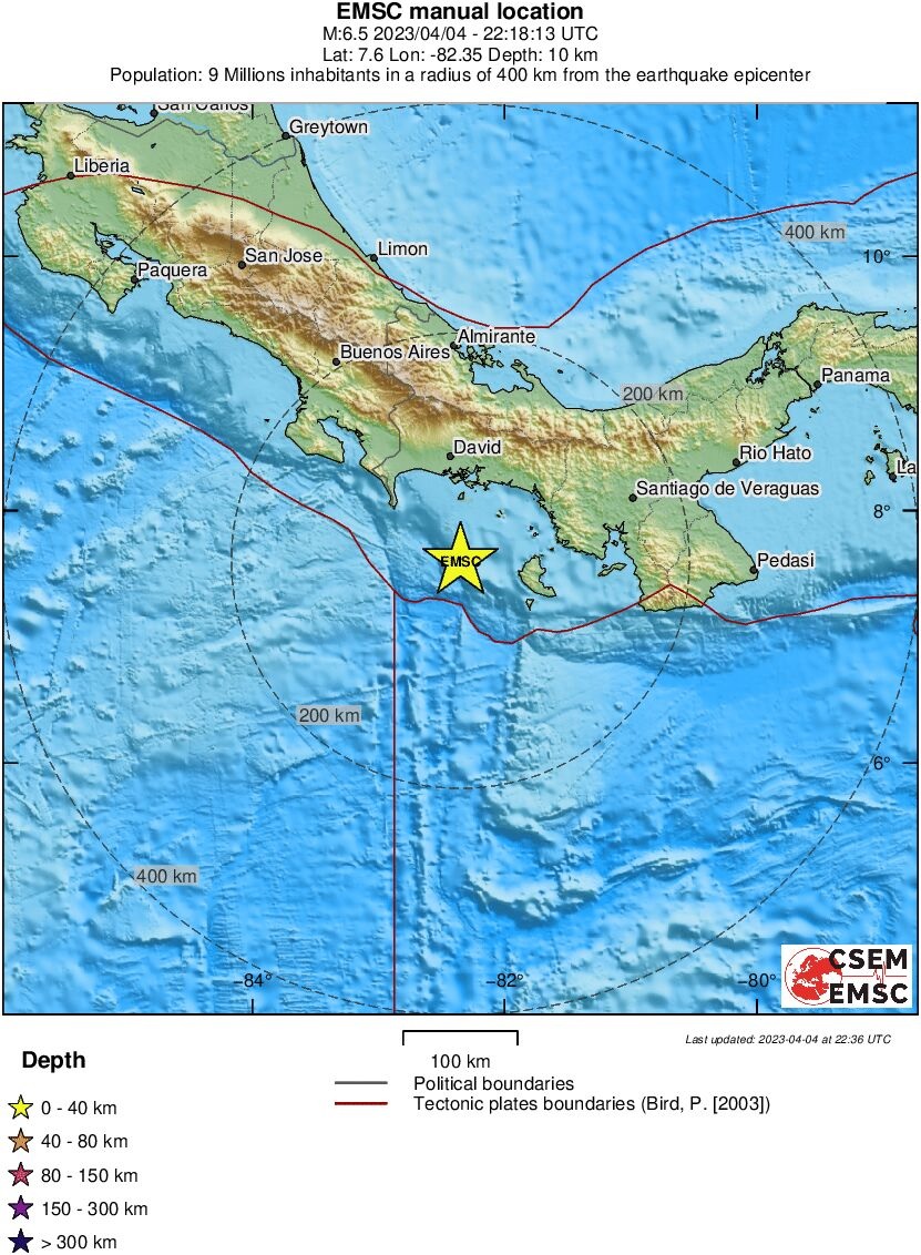 Ισχυρή σεισμική δόνηση 6,5 βαθμών καταγράφηκε στην περιοχή της Μπόκα Τσίκα στον Παναμά χθες Τρίτη (4/4), ανακοίνωσε το Ευρωμεσογειακό Σεισμολογικό Ινστιτούτο, ωστόσο κατά τα πρώτα στοιχεία της παναμαϊκής πολιτικής προστασίας δεν υπάρχουν θύματα ή σοβαρές υλικές ζημιές.