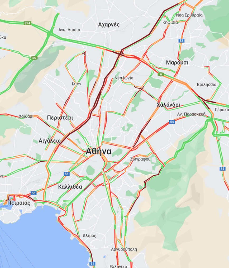 Ο χάρτης με την κίνηση τώρα στους δρόμους…