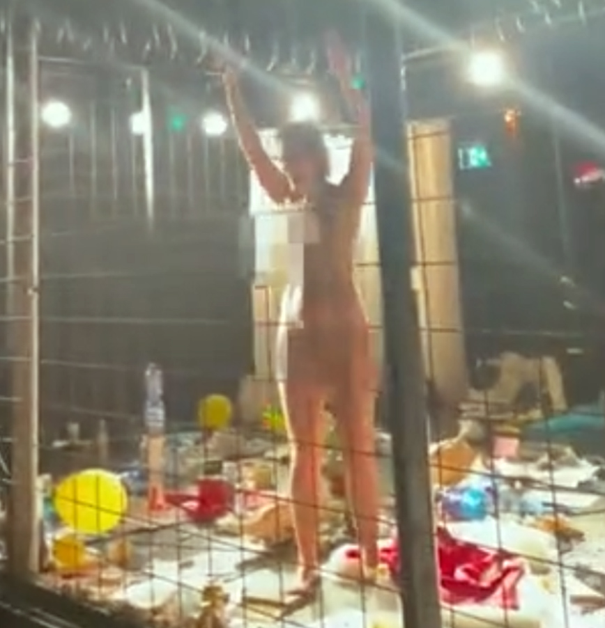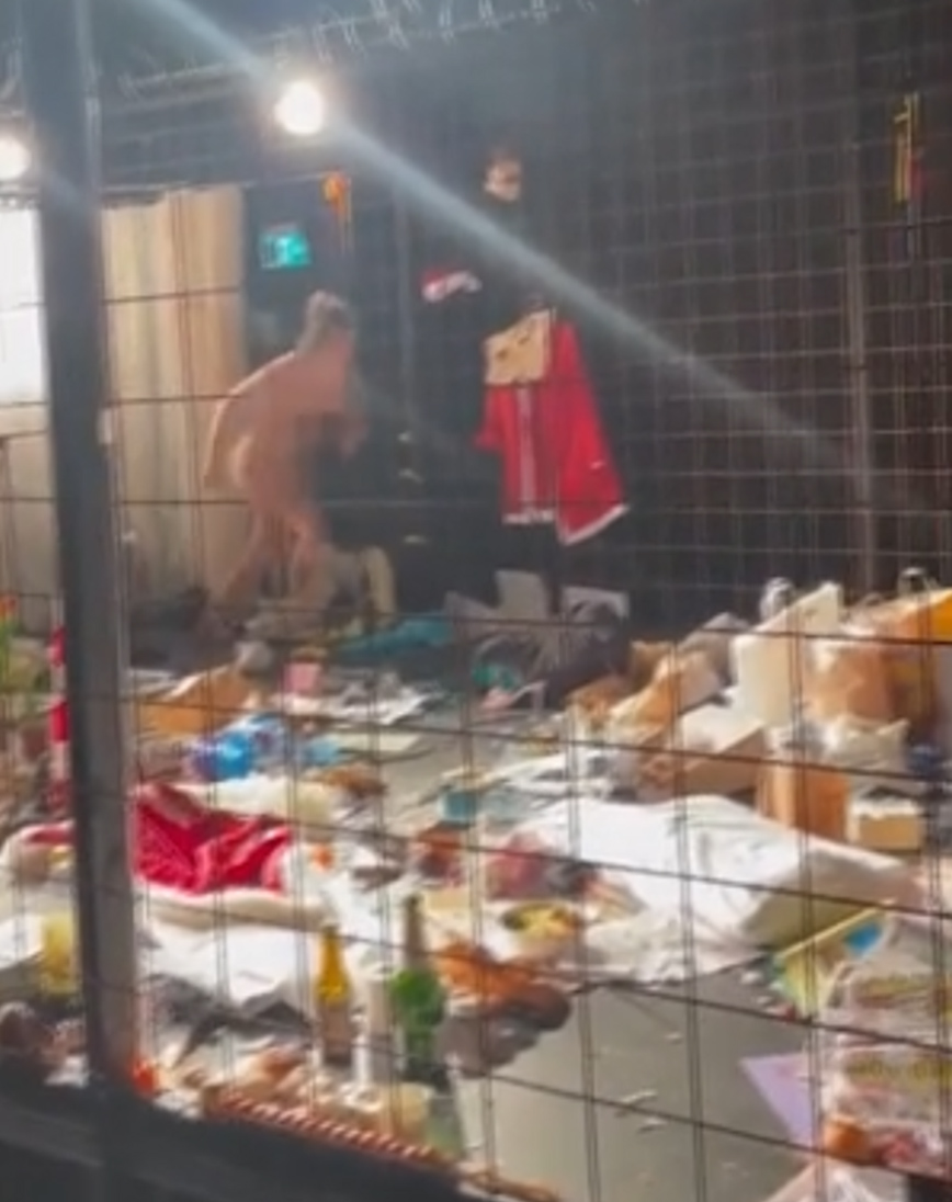 Σε άλλες στιγμές, η Skarin παίζει μέσα στο κλουβί, ποζάρει για φωτογραφίες και κοιτάζει το κοινό. Το πλήθος χειροκροτεί, ενώ στη συνέχεια επανεμφανίζεται, κρατώντας ένα μπουκάλι κρασί και πανηγυρίζοντας.