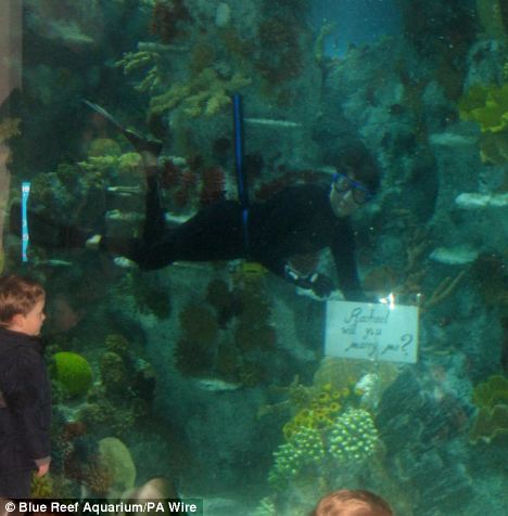 Έτσι ο δύτης που μπήκε στο ενυδρείο για να ελέγξει τις λειτουργίες κρατούσε και ένα χαρτί το οποίο έγραφε «Ρέιτσελ θέλεις να με παντρευτείς;»