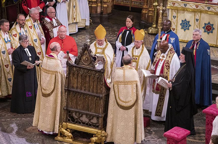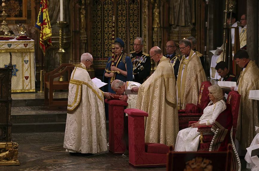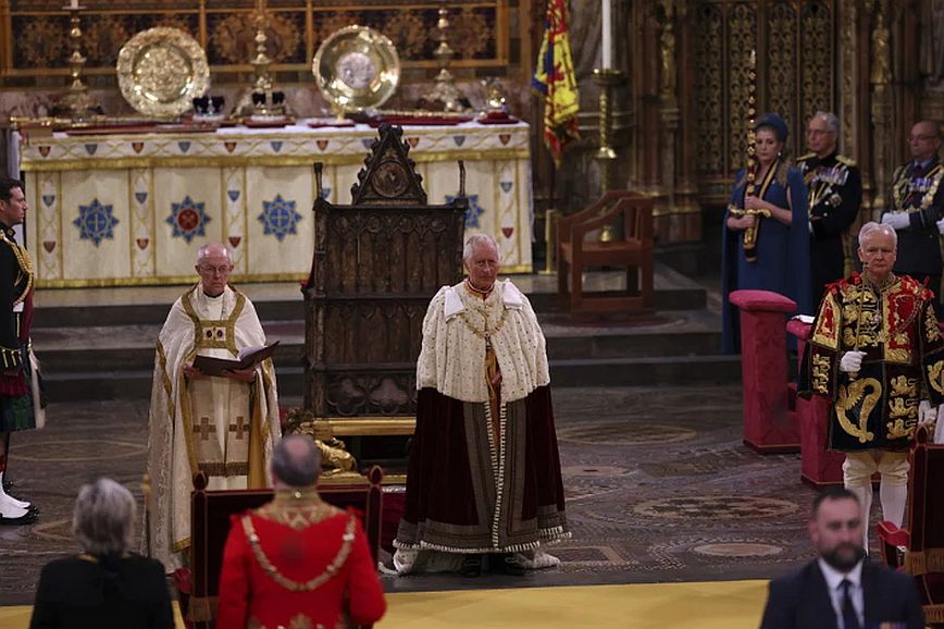 Μπροστά σε 2.300 προσκεκλημένους, μεταξύ των οποίων περισσότεροι από 100 αρχηγοί κρατών, ο βασιλιάς ορκίστηκε επίσης να διατηρήσει την προτεσταντική θρησκεία στο Ηνωμένο Βασίλειο και να διαφυλάξει τα δικαιώματα της Εκκλησίας της Αγγλίας.