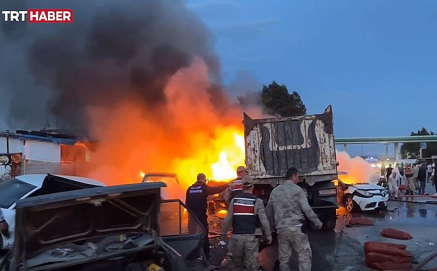 Σύμφωνα με το πρακτορείο Anadolu, ο οδηγός φορτηγού έχασε τον έλεγχο του οχήματός του, με αποτέλεσμα να εισέλθει στο αντίθετο ρεύμα κυκλοφορίας και να συγκρουστεί με εννέα αυτοκίνητα και δύο μικρά λεωφορεία. Το φορτηγό και ένα λεωφορείο τυλίχθηκαν στις φλόγες.