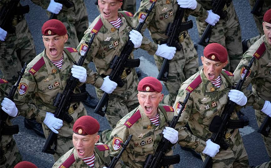 «Ο πολιτισμός βρίσκεται και πάλι σε ένα σημείο καμπής. Εναντίον της πατρίδας μας έχει εξαπολυθεί πραγματικός πόλεμος. Απωθήσαμε τη διεθνή τρομοκρατία, θα προστατεύσουμε τους κατοίκους του Ντονμπάς, θα εγγυηθούμε την ασφάλειά μας», τόνισε ο Πούτιν ενώπιον χιλιάδων στρατιωτών και της ρωσικής πολιτικής ελίτ, η οποία συγκεντρώθηκε για να τιμήσει την ήττα της ναζιστικής Γερμανίας το 1945.