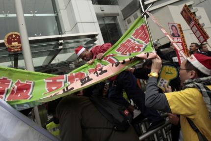 Οι διαδηλωτές ζήτησαν την απελευθέρωση του τιμηθέντος με το βραβείο Νομπέλ Ειρήνης για το 2010 Λιου Σιαομπό, ο οποίος έχει καταδικαστεί σε 11ετή κάθειρξη με την κατηγορία της ανατρεπτικής δράσης.