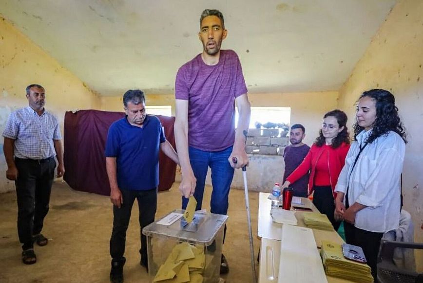 Ψήφισε ο ψηλότερος άντρας του κόσμου. Ο 41χρονος ονομάζεται Σουλτάν Κοσέν και ο ίδιος πήγε μέχρι την κάλπη στην επαρχία του Μαρντίν στην πόλη Ντερίκ για να ρίψει την ψήφο του.