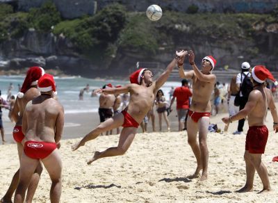 Άγγλοι τουρίστες παίζουν βόλεϊ γιορτάζοντας τη μέρα των Χριστουγέννων στη παραλία Μπούντι στο Σίδνεϊ.