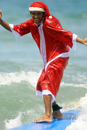 Στην Ινδονησία ένα σέρφερ ντυμένος Άγιος Βασίλης