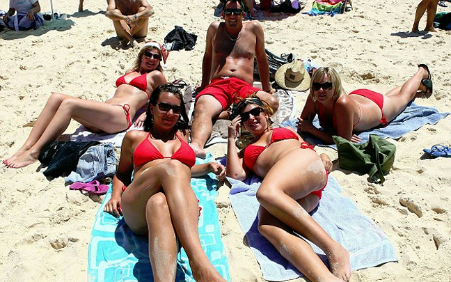 Βρετανίδες τουρίστριες εκμεταλλεύονται τον ηλιόλουστο καιρό στην παραλία Μπόντι